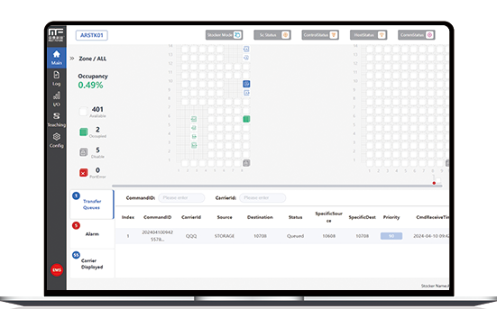 给予对STK的智能化管理功能,遵循SEMI E88协议,接收客户上位系统如MCS的命令指派来实现对晶圆盒的入库和出库操作。配合3D相机,可快速实现AutoTeach 功能,方便工厂安装实施。支持RFID、SmartTag 等标签的读取。搭配K8凯发(中国)自研的RFID、SmartTag、E84模块,让设备读取成功率达到同行领先标准。